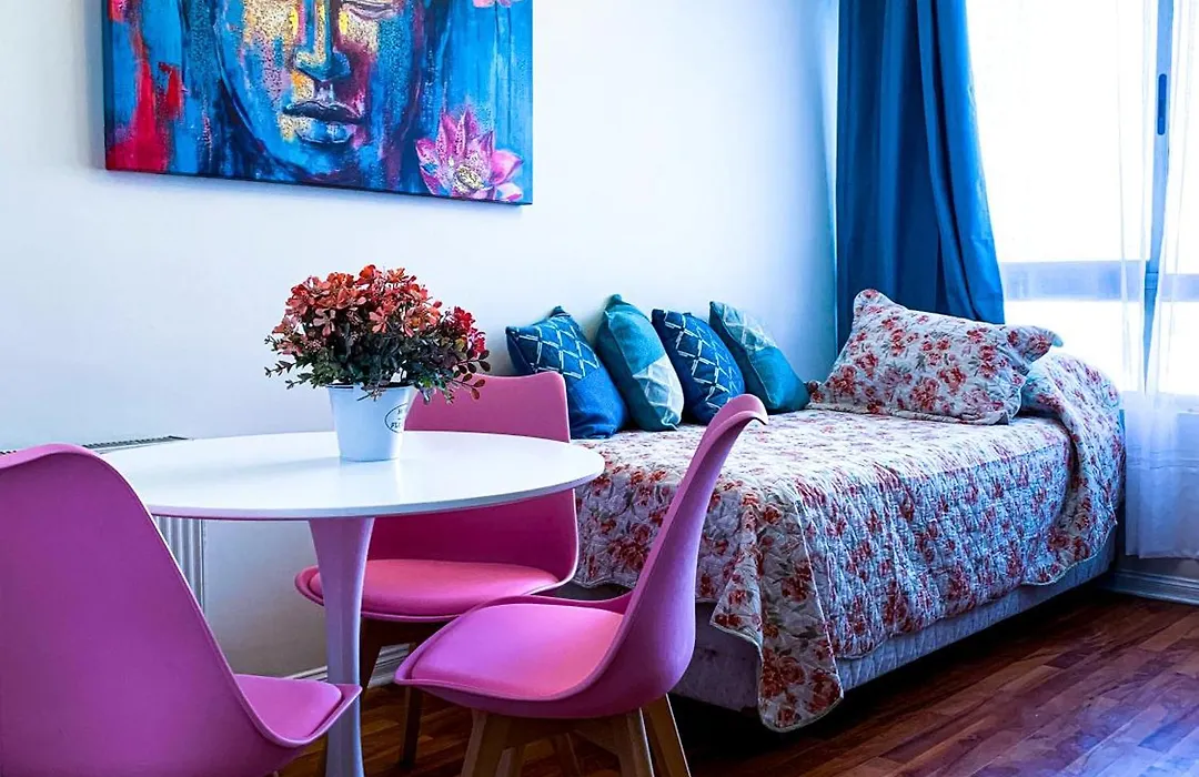 Located about a 5-minute drive from the expansive park "Parque de Los Reyes", which offers the thrill of discovering something beautiful, the 37 m² Depto Metro Santa Ana 3 Apartment includes a barber shop. Wi-Fi and parking are also available at the apartment.